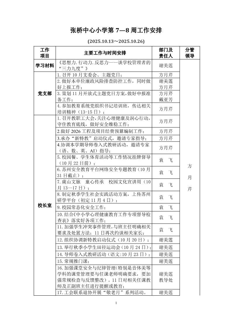 2025-2026第一学期 第7-8周工作安排